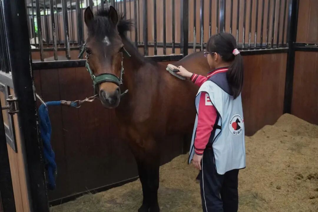 “以前只在电视上见过马,今天特别期待能亲手给它刷毛。”五年级学生赵婉宁兴奋地说。四年级的李泰然分享了他的发现和心得:“马比我想象中温顺,只要让它们感受到善意和安全,就能亲近起来。”他还认真总结了刷马的小技巧:动作要轻柔让马儿感知,梳理鬃毛和尾巴得耐心缓慢,刷洗身体也要顺着毛发生长方向。