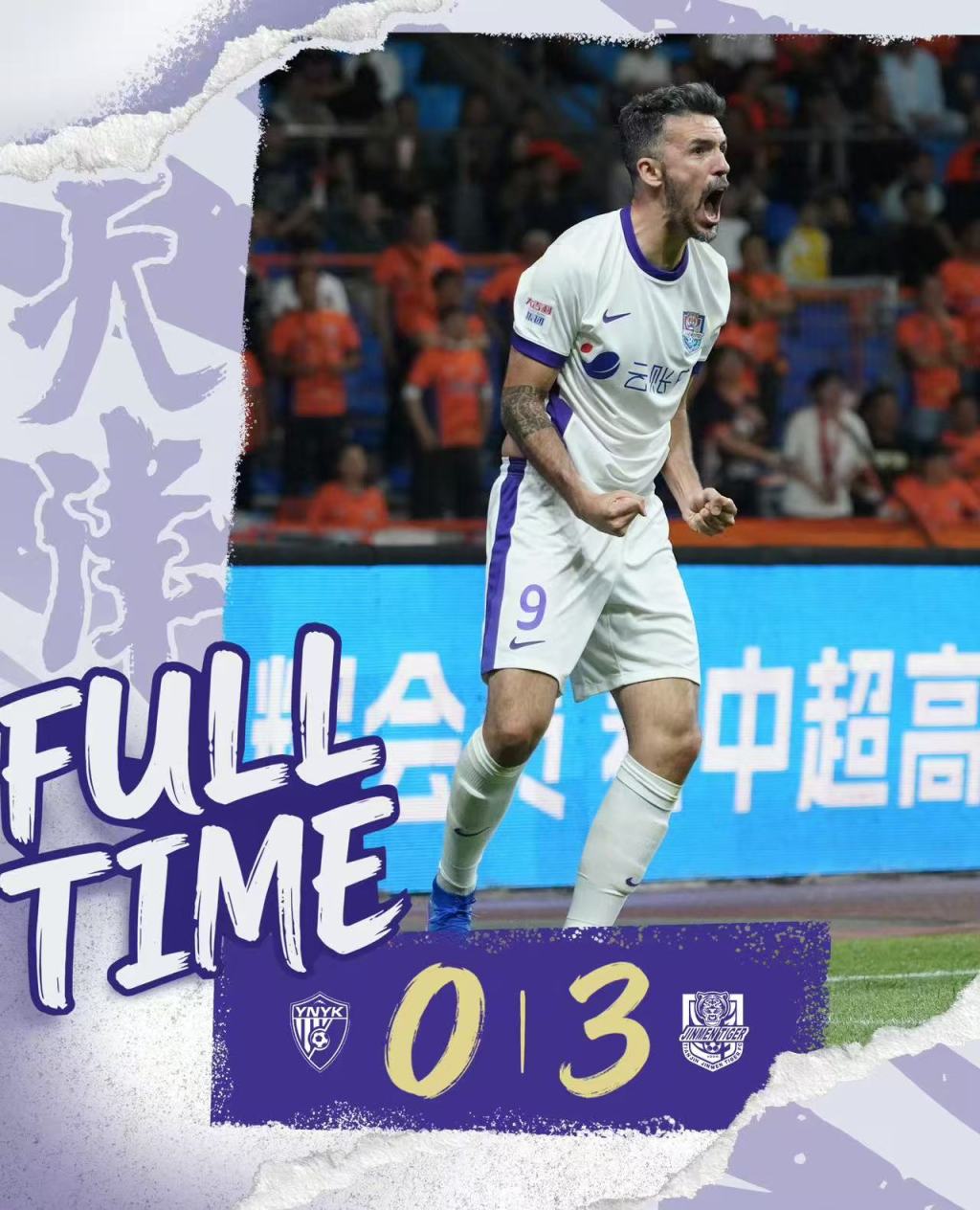 北京时间4月17日晚,中超第六轮,津门虎客场3-0击败云南玉昆,收获赛季首胜。上半场基莱斯利用门将失误破门,下半场基莱斯助攻谢蒂内扩大比分,玉昆中卫染红后谢蒂内再助基莱斯锁定胜局。此前2平3负的津门虎积分升至-5分。主帅于根伟称:“客场主动变阵,调整球员心态,要求坚持地面进攻,球员执行力到位,配得上这场胜利。球队会继续坚持现有技战术体系。”