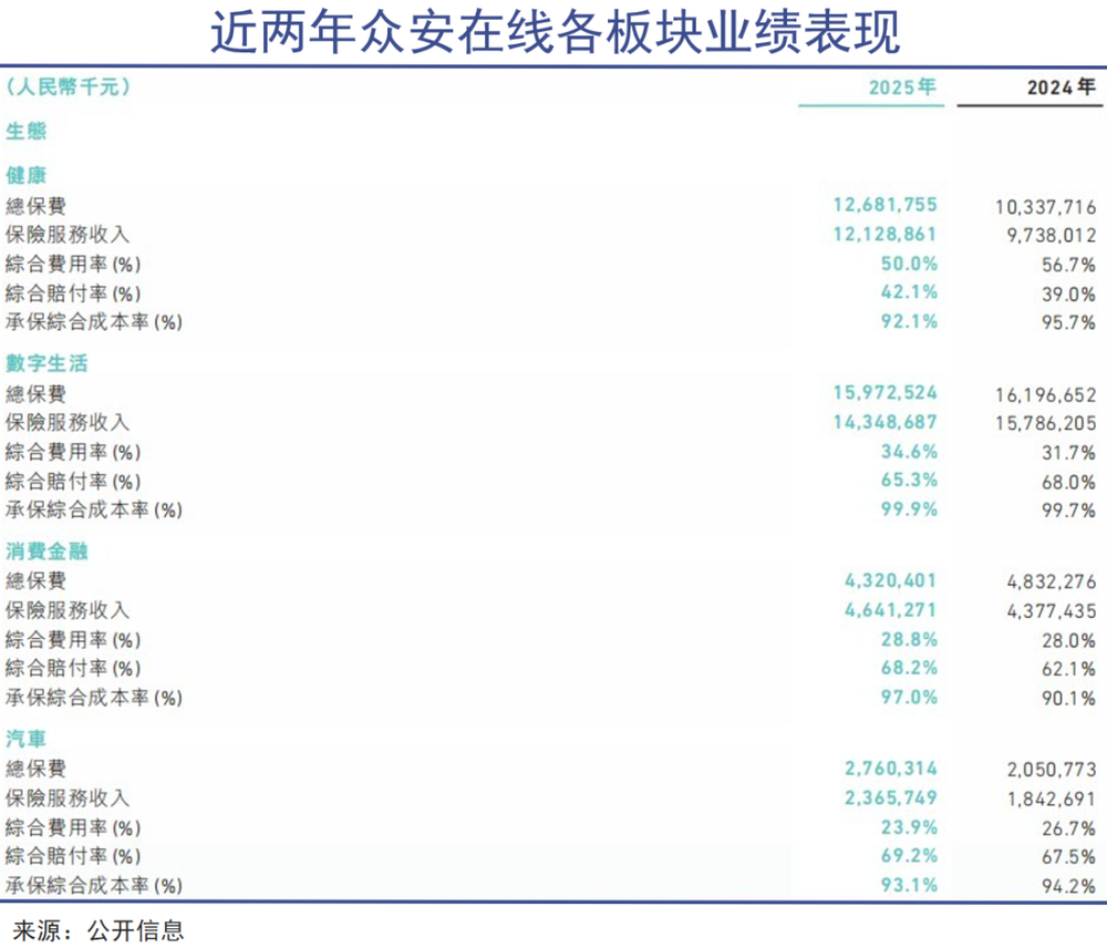 2025年,众安在线四大核心生态表现分化,增长质量有待考量。