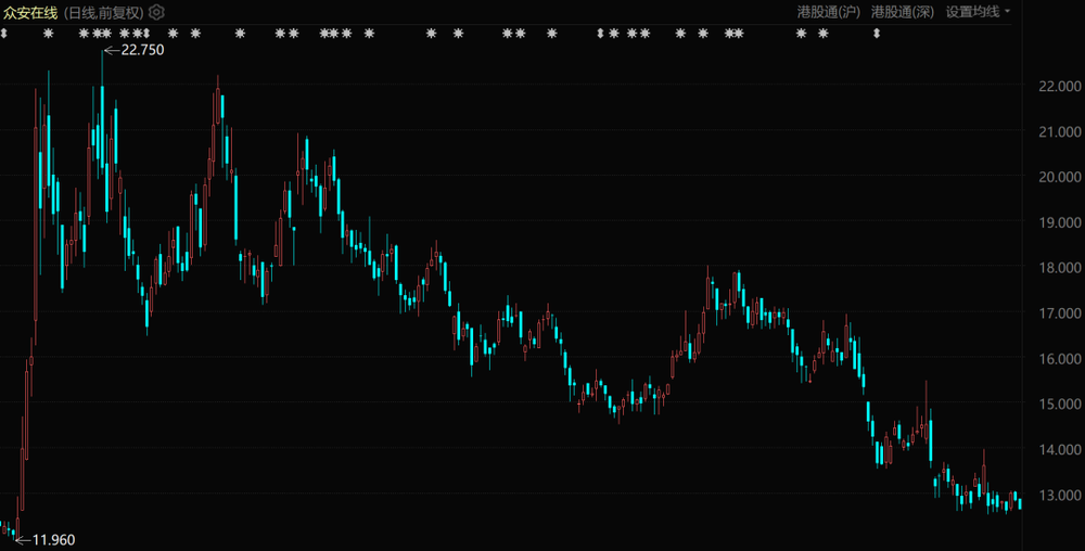 自2025年五六月份后,“稳定币热度”褪去,众安在线股价持续下跌,如今几近腰斩。这意味着,若无特殊概念刺激,无论是大佬还是普通投资者,都对其价值期待不高。
