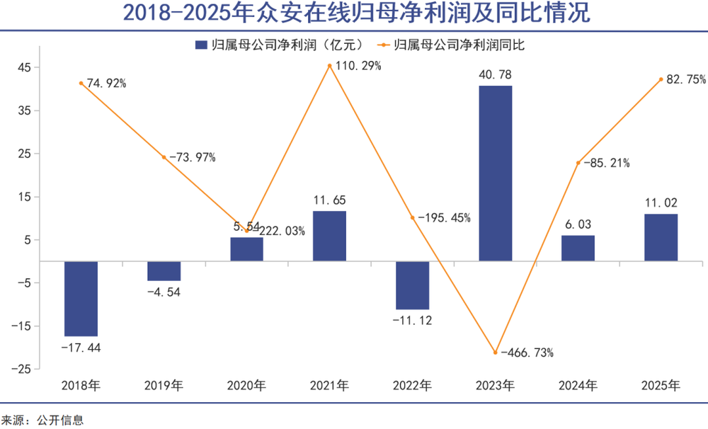 2025年净利润超80%的同比增幅是众安在线年报中最吸睛的数字,但深入分析后发现,其利润增长的核心驱动力并不稳定。