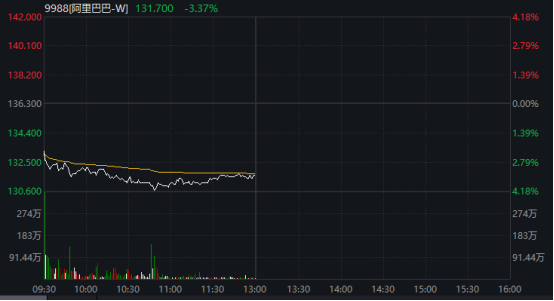 阿里巴巴-W股价同样走低,盘中跌幅一度超过4%。