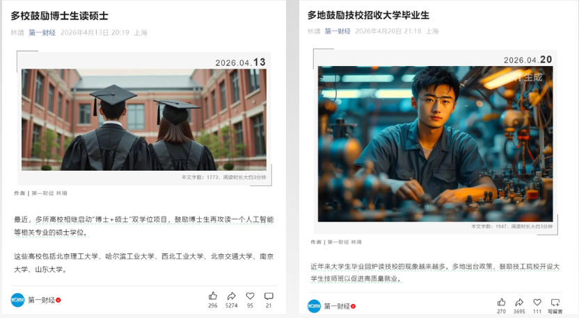 一个在学历顶端拓展,一个向技能端下沉,看似方向相反,实则都指向大学教育的焦虑。