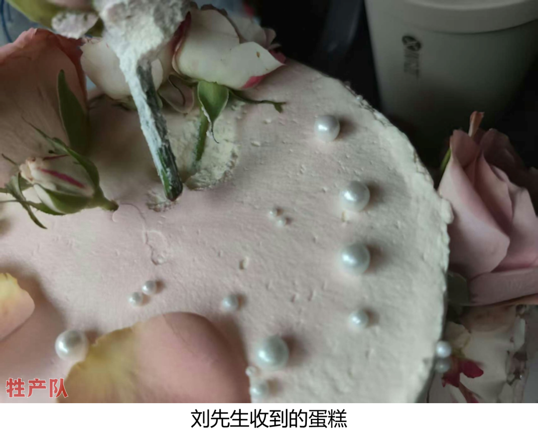 事件的开端有些出人意料。2025年7月,北京海淀区的刘先生在某平台的“甜颜情书”网红店,订购了一款精美的生日蛋糕。收到蛋糕后他却傻了眼:蛋糕上插着的鲜花不仅未做食用处理,甚至还带着泥土和虫子。