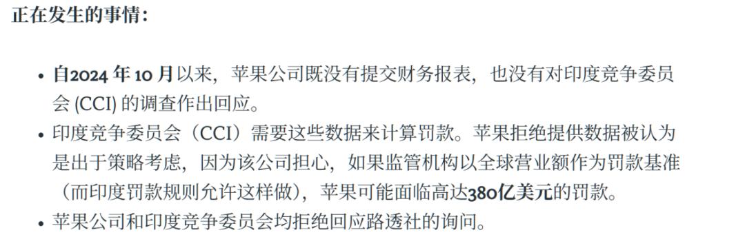 更令人震惊的是罚款金额高达380亿美元。数据显示,苹果2025年在印度的营收预计为90亿美元,净利润仅3.6亿美元。
