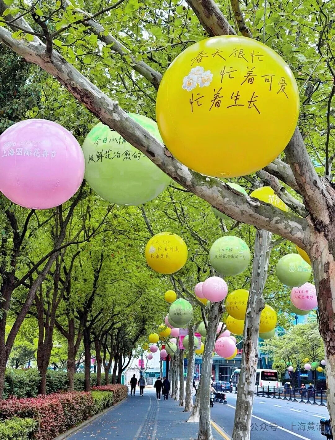 福佑路、人民路沿线的梧桐树上,挂着粉黄绿三色气球,随风轻晃——这是2026上海国际花卉节黄浦主会场的春日限定惊喜,也是“花花大豫园”主题活动的一部分