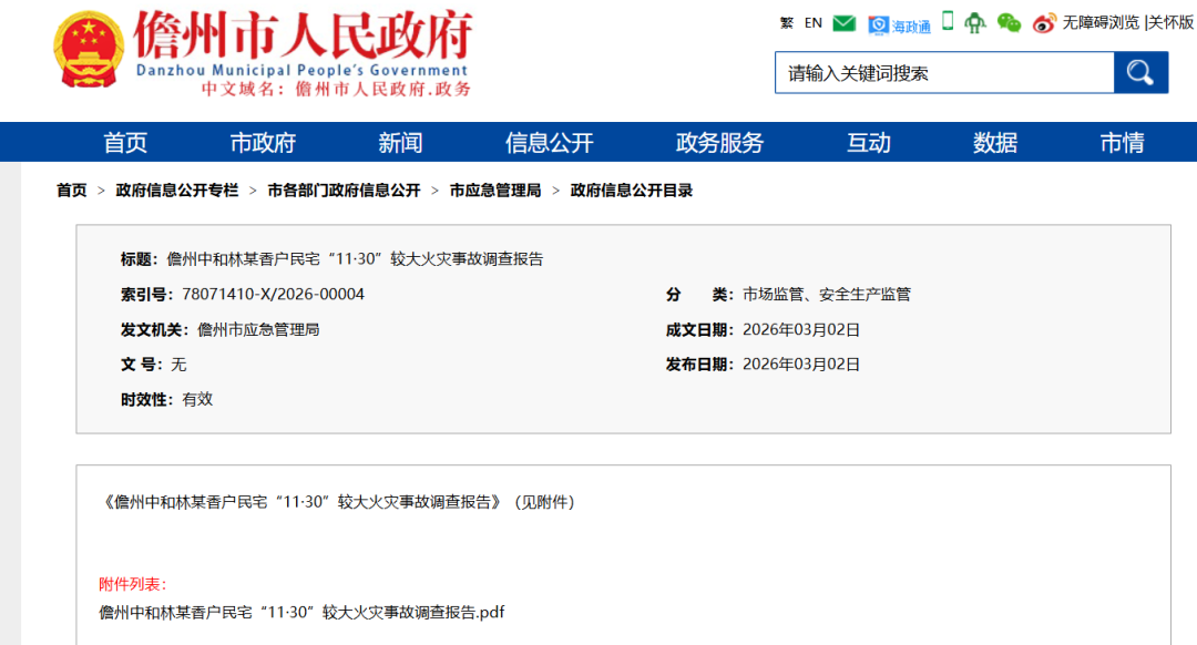 近期,海南省儋州市人民政府发布了一起较大火灾事故的调查报告,揭开了这起悲剧的真相。