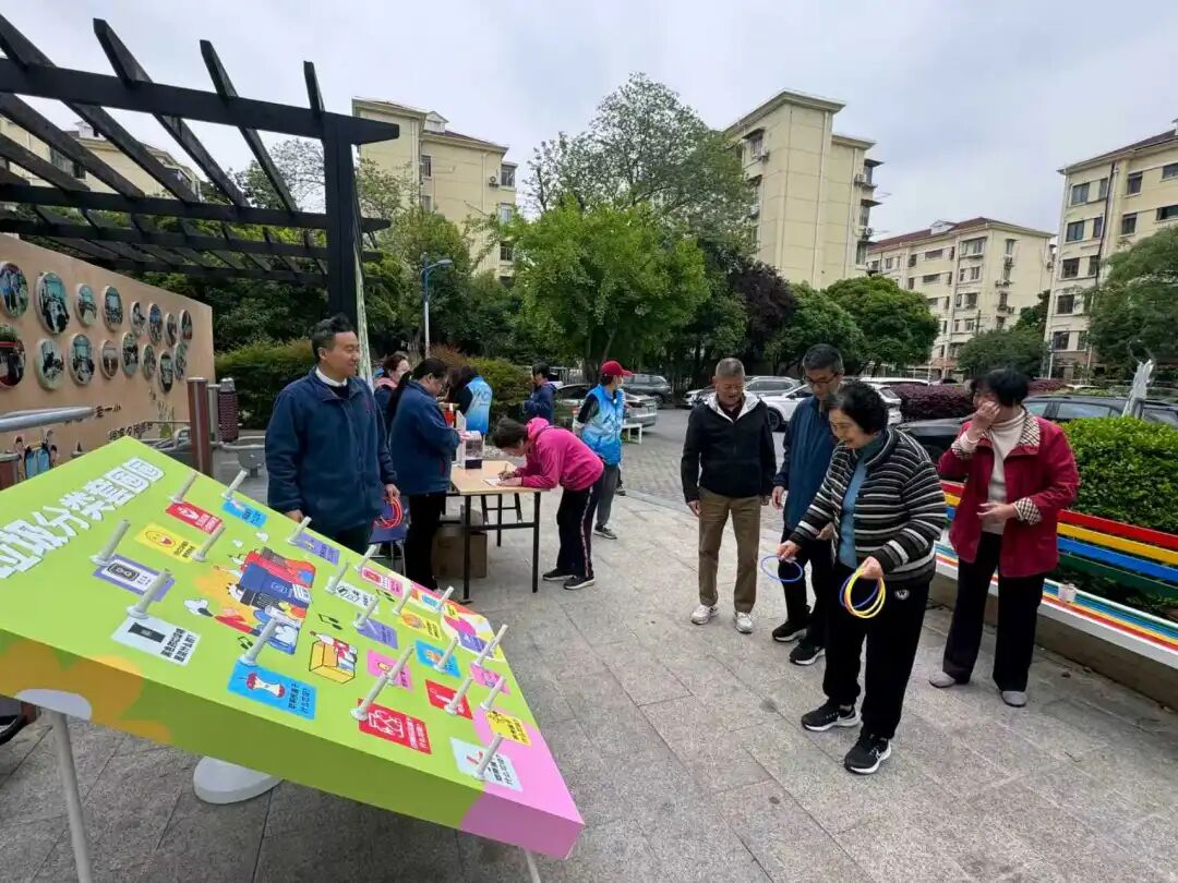 长桥街道精心设计了垃圾分类知识套圈、咖啡渣循环DIY等趣味活动,将垃圾分类知识与游戏相结合。居民们手持套圈,瞄准展板上的垃圾分类问题进行投掷并现场作答。大家积极思考、踊跃参与,在轻松愉快的氛围中巩固了分类知识,掌握了分类技巧。