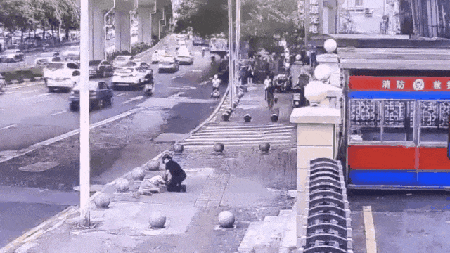 (消防站门口监控记录下车祸瞬间)