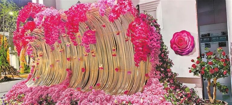 河南花冠工艺品有限公司展厅内的仿真花树。申鸿浩 摄