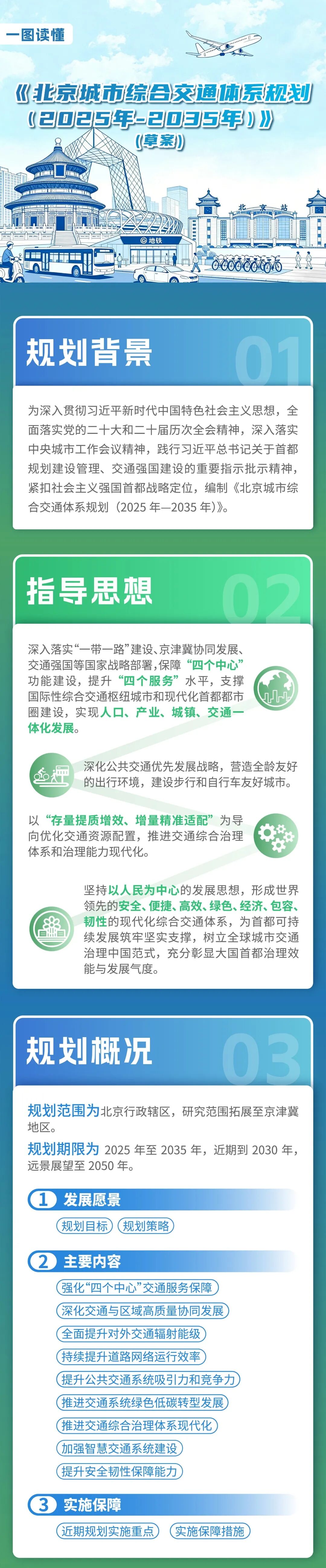 此规划的期限设定为2025年至2035年,近期目标节点为2030年,远景展望至2050年。《规划》提出,北京将深化公共交通优先发展战略,打造全龄友好的出行环境,建设步行与自行车友好城市。