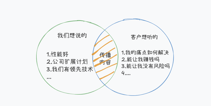 当听到“我们是全球领先的XX制造商,发布了最先进的…”,用户可能会想:“这跟我有什么关系?为什么要听?”传播内容必须是“我们想说的”与“用户想听的”的交集。