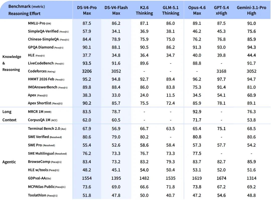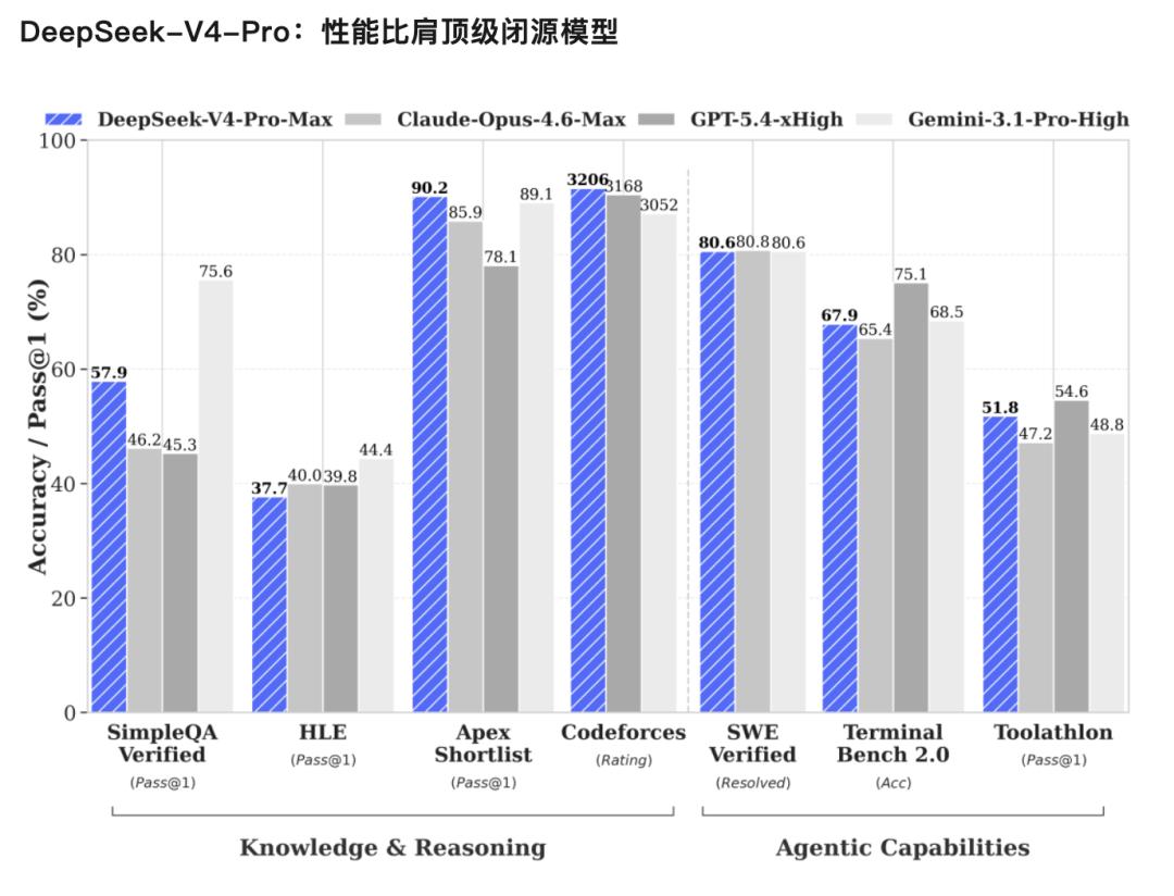 V4-Pro,性能可与顶级闭源模型比肩。
