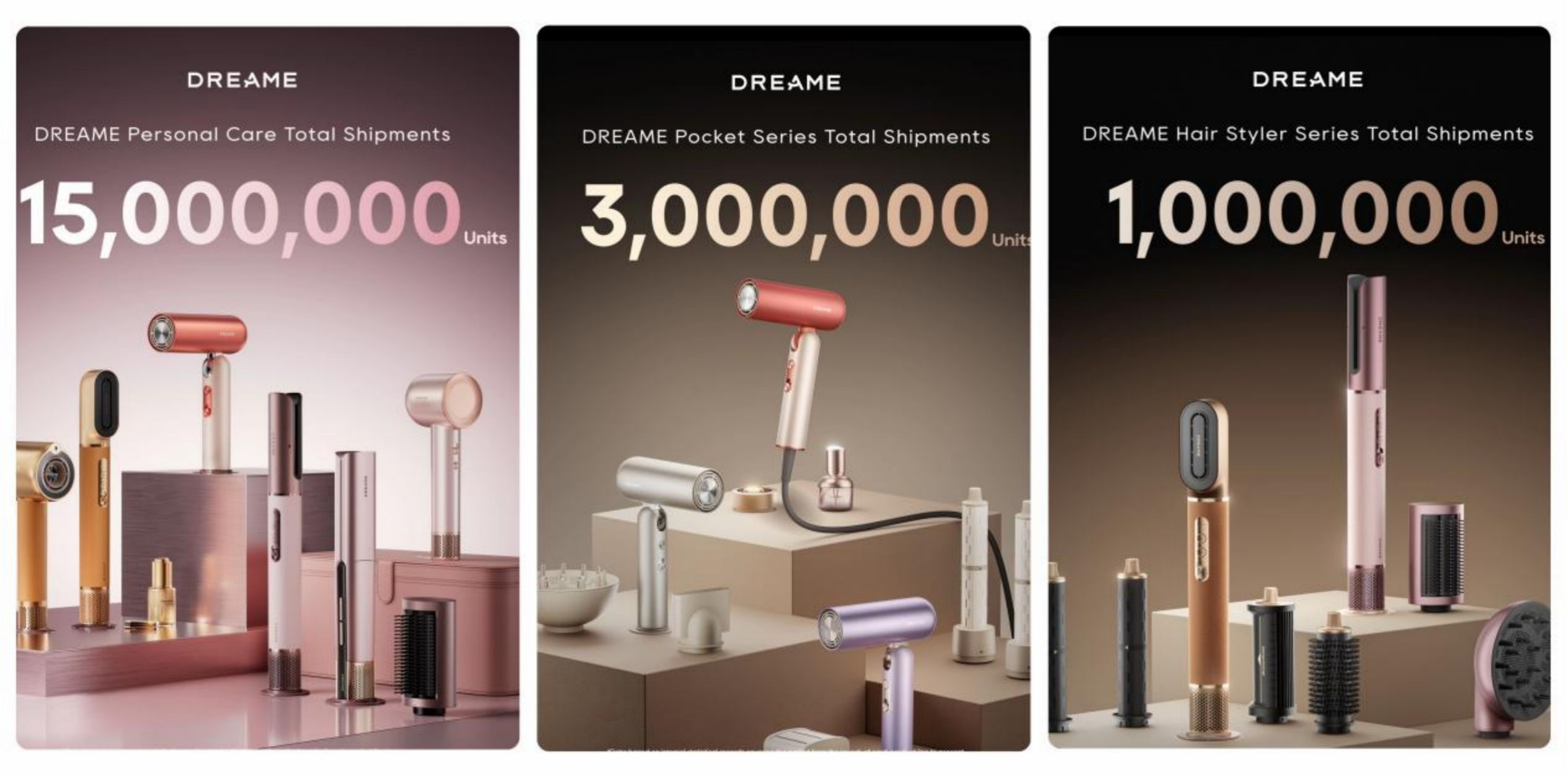 市场的认可不仅体现在增长速度上,还反映在用户的广泛选择和良好口碑中。截至目前,追觅个护全品类累计出货量已超过1500万台,其中独创的Pocket折叠系列出货量超300万台,智能造型系列出货量超100万台。产品畅销全球120多个国家和地区,多款热门产品在各区域持续占据领先位置,追觅吹风机正逐渐成为“细分场景头发护理专家”的行业标杆。