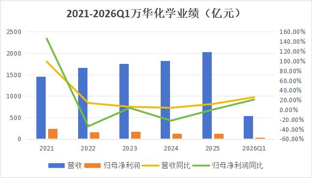 2026年第一季度,万华化学实现营收、利润双增,同比分别增长25.5%和20.62%,这是2024年以来首次单季度营收与利润同步增长。