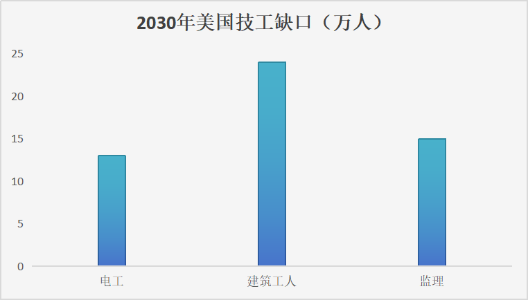 据麦肯锡估计,到2030年,美国将缺少13万电工、15万监理和24万建筑工人。