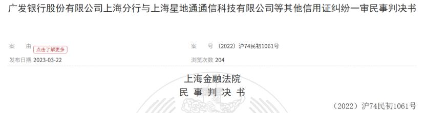 骗局爆发后,广发银行起诉上海星地通与隋田力。上海金融法院2022年3月立案,2023年1月判决上海星地通支付垫款本金及手续费5702.8550万元和逾期利息。此外,2021年11月法院还审理过双方的金融借款合同纠纷,两次执行金额分别为6011.75万元、3423.62万元,但上海星地通与隋田力未参与庭审。2023年4月的执行裁定书显示,上海星地通暂无财产可供执行,仅4595.98元执行款也无法收回,1.76亿元债权回收渺茫。公众质疑广发银行授信时是否核实贸易背景真实性。