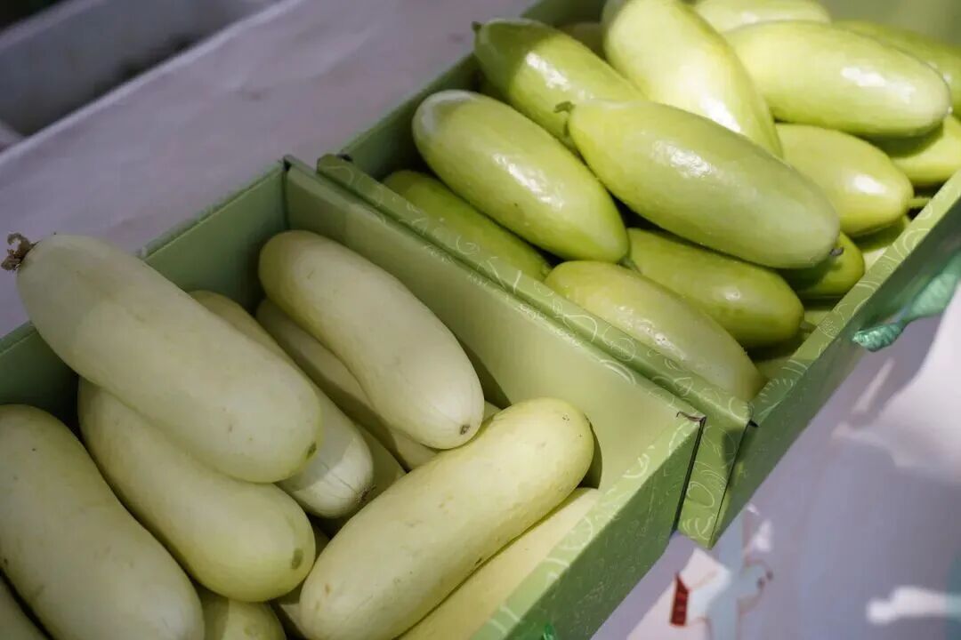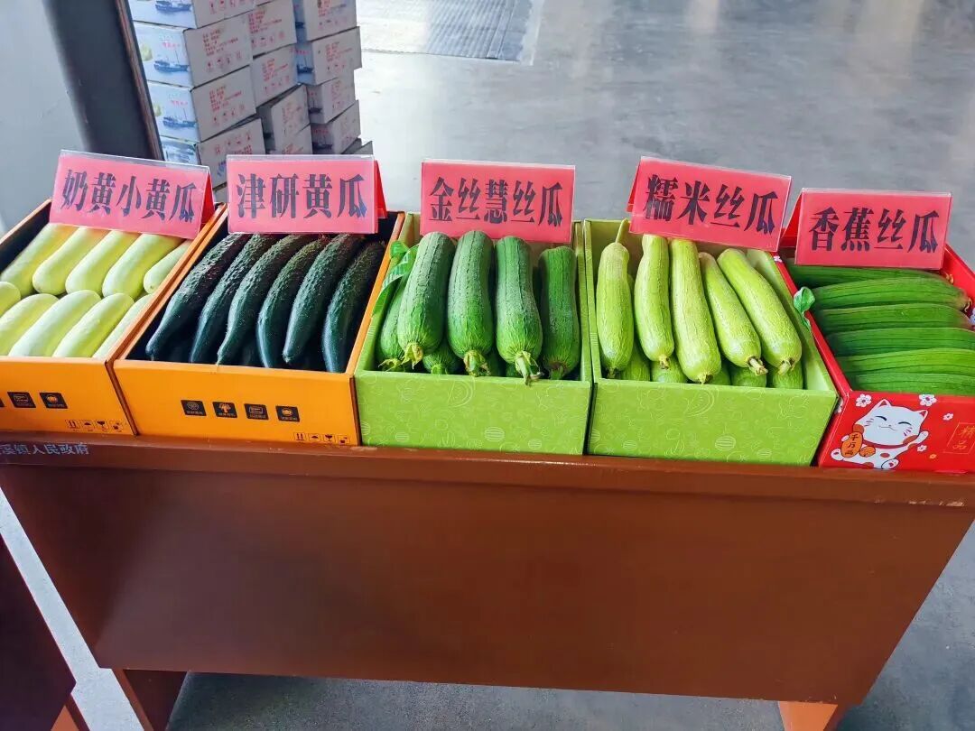 共富市集上最先售罄的是奶黄小黄瓜和脆玉黄瓜。奶黄小黄瓜表皮淡黄、口感嫩滑;脆玉黄瓜无刺无渣、清甜爽脆,深受年轻家庭和轻食爱好者喜爱,亩产约10000斤,是2月至5月供应高峰期的主力产品。