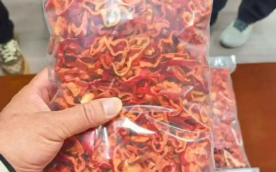 最受关注的是特色农产品水果彩椒,它可生吃,口感甜脆略带微辣,被誉为“维C之王”。主产季为2月至5月,亩产约15000斤至20000斤,计划下半年扩种至200亩。团队还在研发彩椒冻干和功能性饮品,预计5月份上市,既可以轻食,也能作为休闲食品和VC饮料。