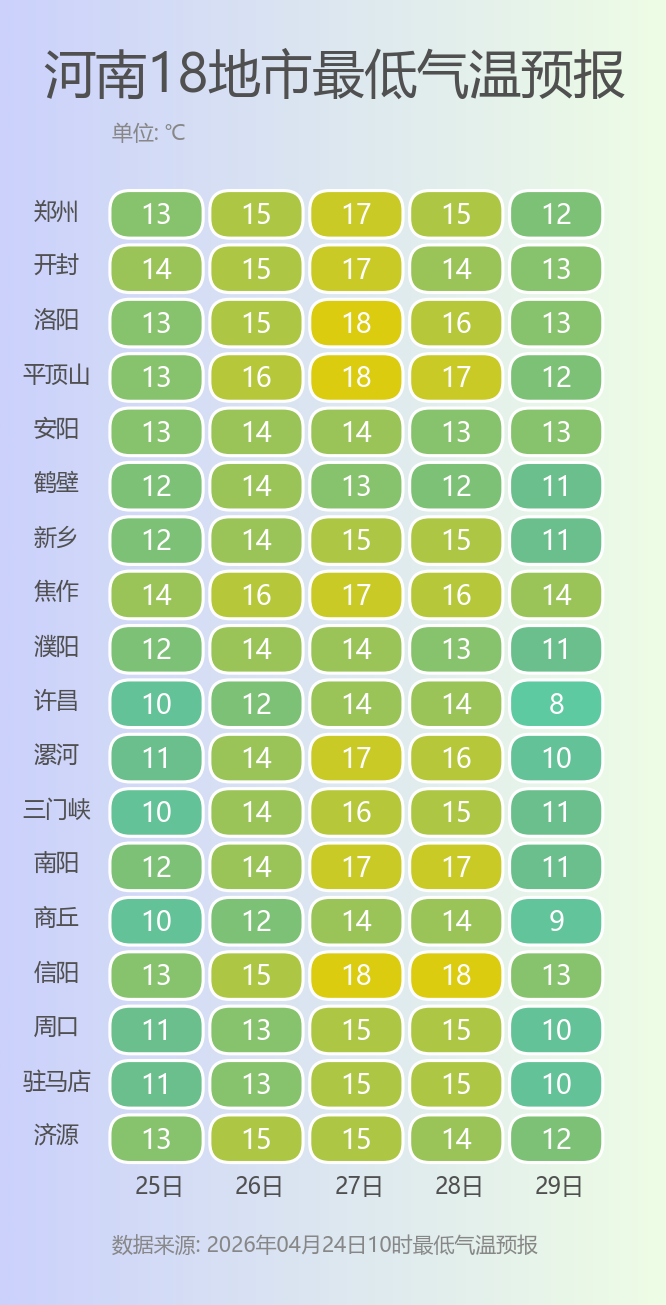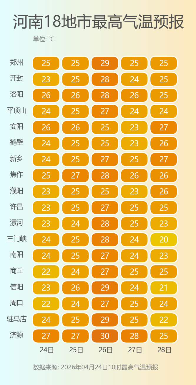 郑州最高气温将回到25℃以上