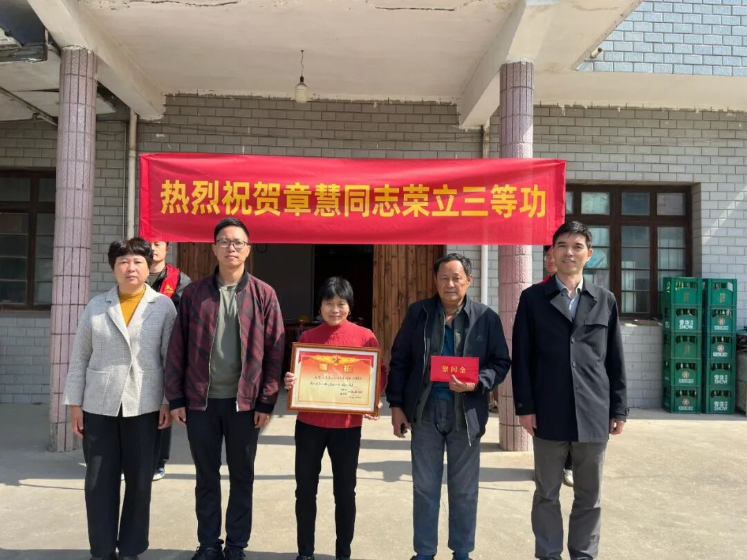 昨日上午,县退役军人事务局、沈荡镇退役军人服务站等单位的工作人员,带着这份承载荣誉的喜报来到章慧家中,向他的家属郑重传递这份军人的荣光。