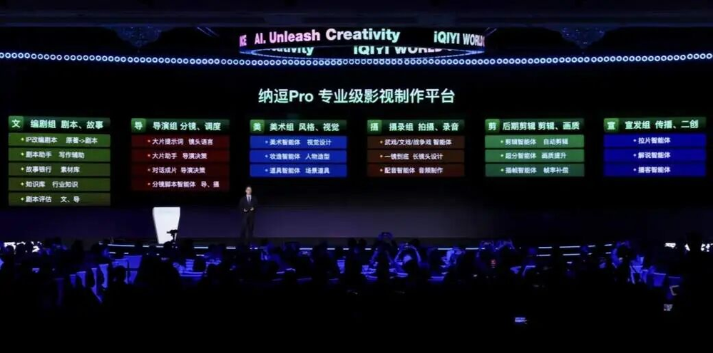 降本提效通常是内容平台拥抱AI的主要原因。和丁磊类似,爱奇艺创始人、CEO龚宇也反复强调AI对平台的作用,无论是电视剧制作产业大会、网络视听大会还是爱奇艺年度大会。在宣布转型为“非中心化的社交媒体”外,爱奇艺开放旗下影视制作平台纳豆Pro商用,并将IP库、艺人库、数字资产库纳入其中。