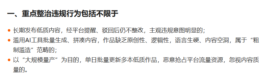 2026年2月4日,番茄小说发布公告,启动专项整治行动,重点打击大规模量产低质内容的违规行为,包括“滥用AI工具批量生成、拼凑内容,作品缺乏原创性、逻辑性,语言生硬空洞”,以及“单日批量更新多本低质作品,恶意抢占流量”等。