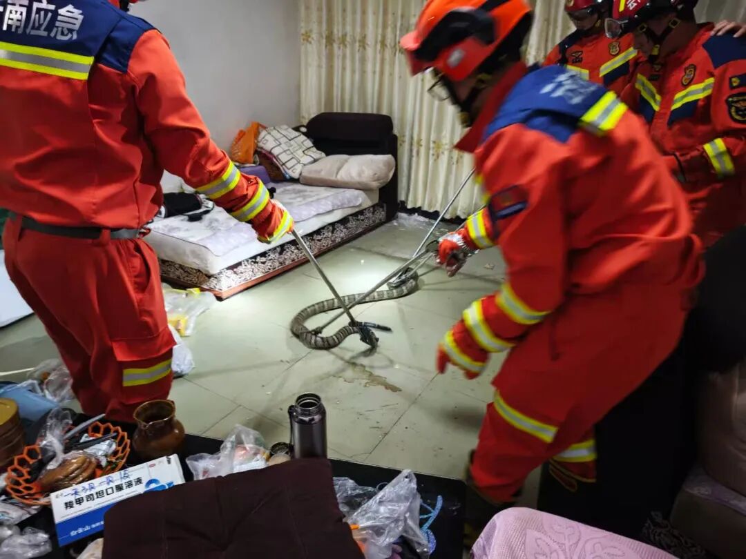 近日,云南丽江华坪县荣将镇哲里村一名女子深夜报警,称自家卧室有大蛇出没,因担心伤人,急需消防员帮助。