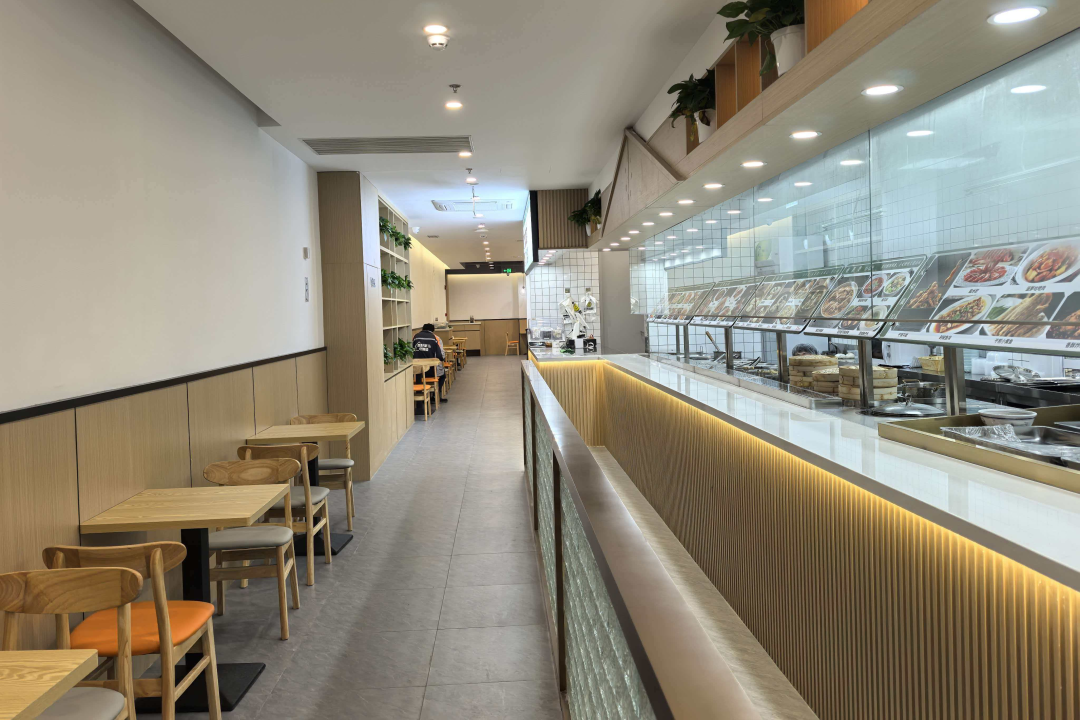 走进食堂,环境宽敞又明亮,这里大约有100个座位,空调、洗手池等设施都很齐全,干净又卫生。食堂的就餐时间是每周一到周日的6:30-19:30,提供早、中、晚三餐。更贴心的是,食堂还承担着社区助餐的功能,专门为周边1公里范围内的社区老年人提供集中就餐和打包外带服务。