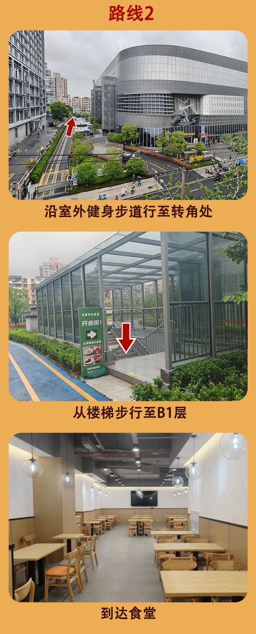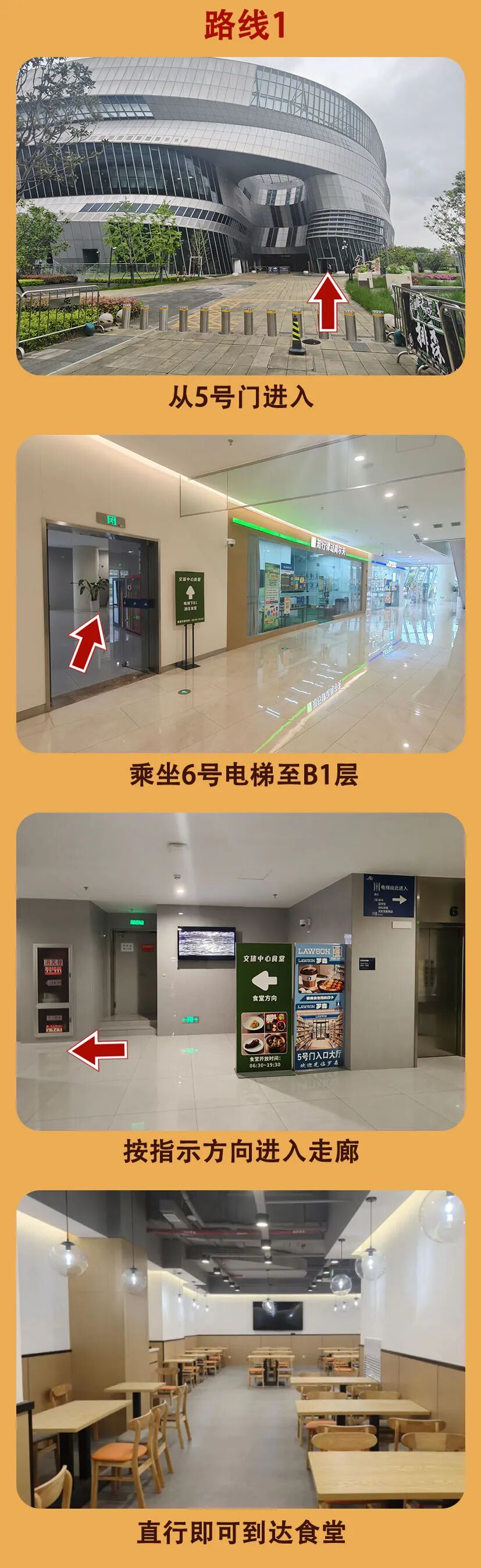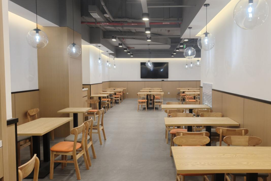食堂北边靠着沪宁铁路,邻近宜川路街道和甘泉路街道,位置优势明显,能有效辐射周边多个社区。周边的公共交通也很完善,市民可以乘坐地铁7号线(岚皋路站)、3号线和4号线(镇坪路站),或者搭乘724路、830路、112路等多条公交线路,都能方便到达。进入普陀区职工文体中心后,通过1号、6号电梯或者步行楼梯就能直达地下一层,内部的指引也清晰明确。