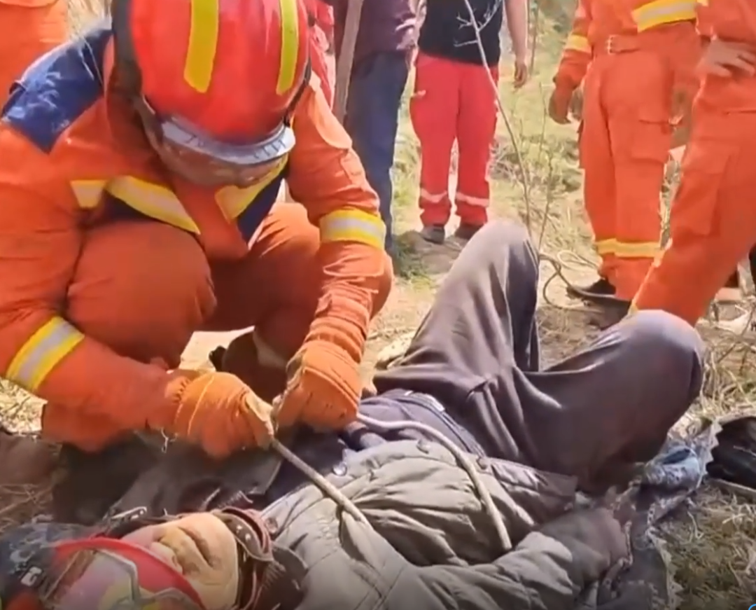 当时老人意识清醒,但因受伤无法移动。救援人员先将老人固定好,再用简易担架小心抬起,一步步艰难地将其抬出山沟,全程格外谨慎,防止老人受到二次伤害。