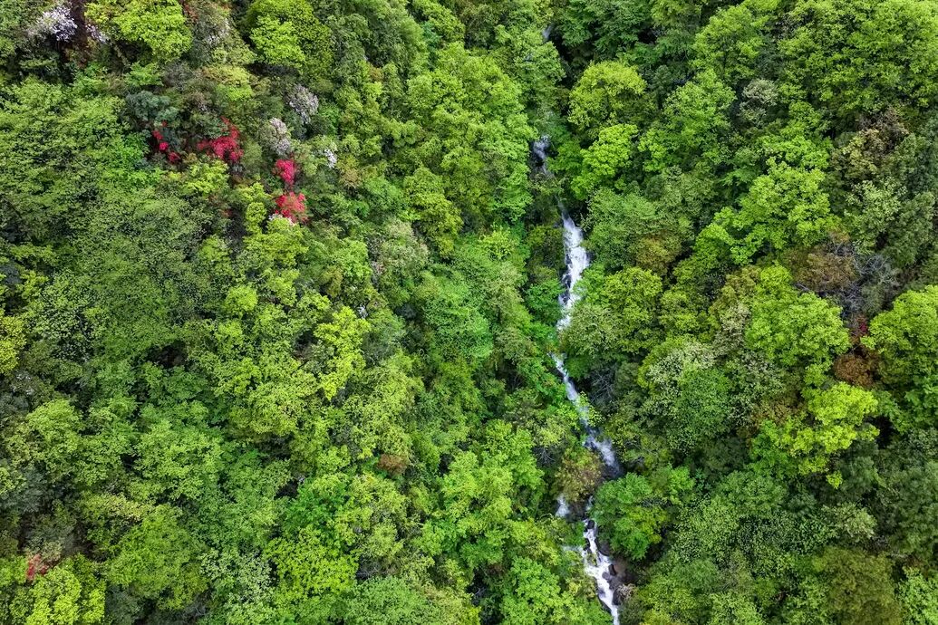 冯家顶位于仙寓山脉南麓,森林覆盖率超90%,是天然的“氧吧”。过去,村民靠山吃山,以砍伐竹木为生,山林生态曾遭破坏。近年来,生态保护理念逐渐普及,当地关停了所有砍伐加工点,村民们放下斧头,开始守护青山。如今,这里的每座山峰、每条溪流都被细心呵护,鬼门关瀑布群常年飞瀑流泉,七彩玉谷的彩石在流水冲刷下光彩夺目,春天映山红染红山岗,夏日清凉山风吸引着各地游客。