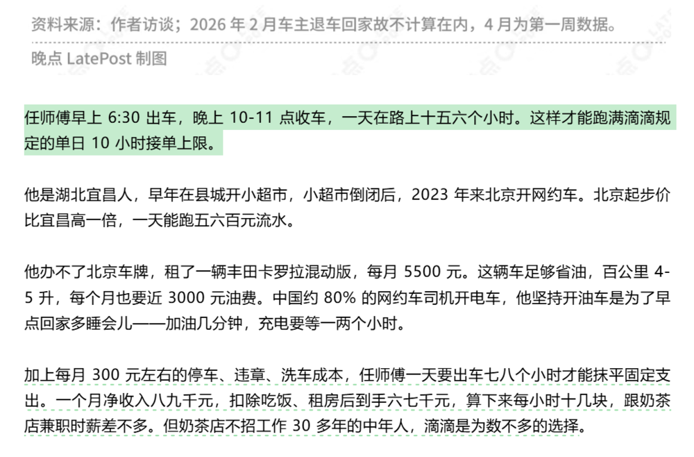起初我以为这只是这位司机的个别情况,毕竟是在特区打拼。但前几天《晚点》的报道证实,这其实是普遍现象。