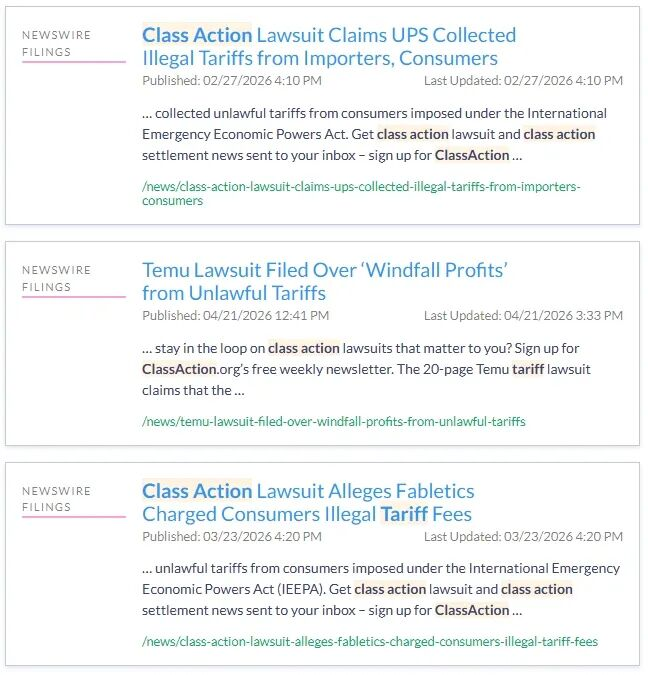 正是受到FedEx等企业的启发,自额外关税被判定‘非法’后,美国各地不断有消费者发起集体诉讼,索尼、三星、Temu等知名企业都曾登上被告席。