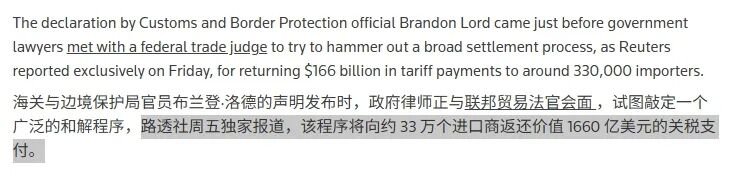 但今年2月,美国最高法院裁定此前的关税政策属于‘非法征收’。据美国海关与边境保护局(CBP)的数据显示,依据该紧急关税政策,共收取了约1660亿美元的额外关税及押金。