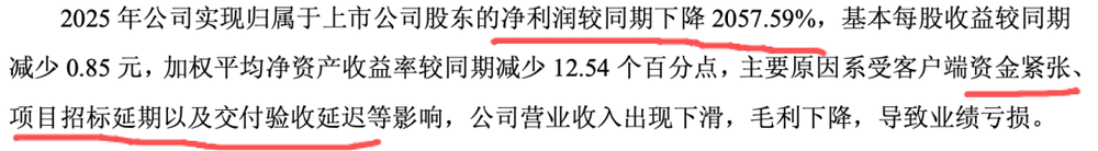 报告显示,浪潮软件2025年营收为11.55亿元,同比下滑38%;净亏损达2.67亿元,净利润同比暴跌2057%。对于这样的业绩表现,浪潮软件将原因归结为客户资金紧张、项目延期等外部因素。