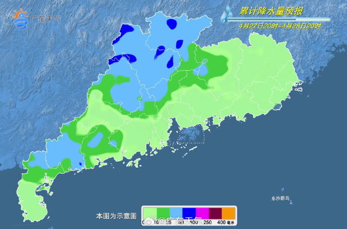 4月28日,清远、韶关、粤西和珠三角大部分市县有大到暴雨,局部大暴雨,还会伴有短时强降水、8~10级雷雨大风等强对流天气,其他市县多云到阴天,有(雷)阵雨,局部大雨。最高气温:南部市县26~28℃,其余市县22~25℃。