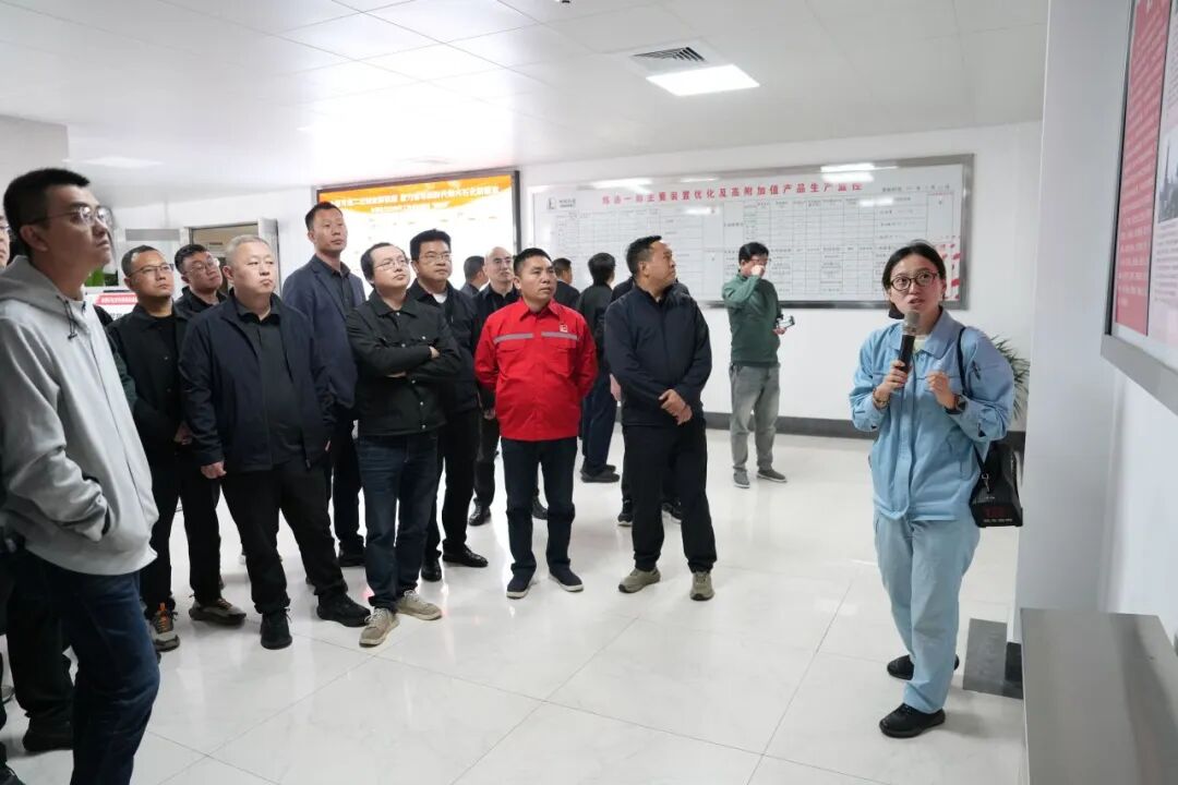 学员们集中参观了孙同根创新工作室,这个以“大国工匠”孙同根为核心的团队,始终坚持“党建+创新”双轮驱动,将思想淬炼与技术攻坚深度融合。助力建成SCR烟气脱硝单元,使氮氧化物排放下降40%;在国内率先消除“白烟”,推动油品质量从国Ⅰ标准跃升至国ⅥB标准,实现了从“跟跑”到“领跑”的跨越。