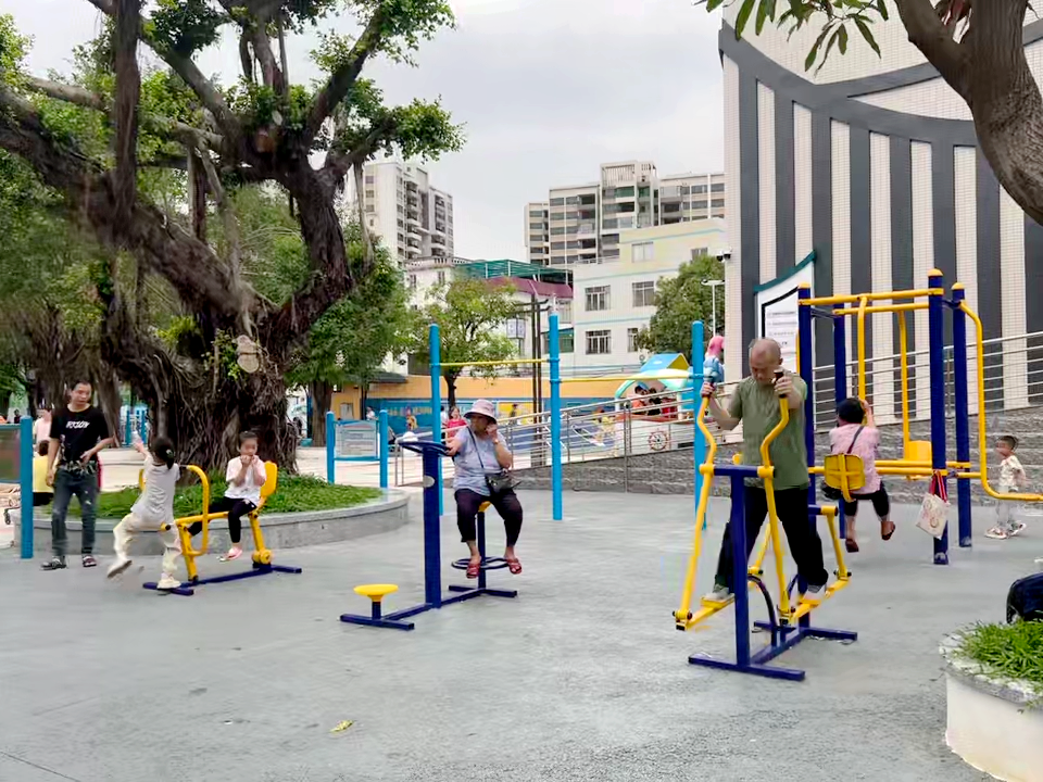 前来散步的村民黄伯对公园的改造成效赞不绝口:“这次改造让环境和功能都有了很大提升,不管是休闲散步还是健身锻炼,都能找到舒适的空间。”村民杨姨满脸笑容,她表示最满意的是那些便民暖心的细节设计:“我最喜欢公园的儿童活动区,既宽敞又安全,我经常带孙子来玩。”