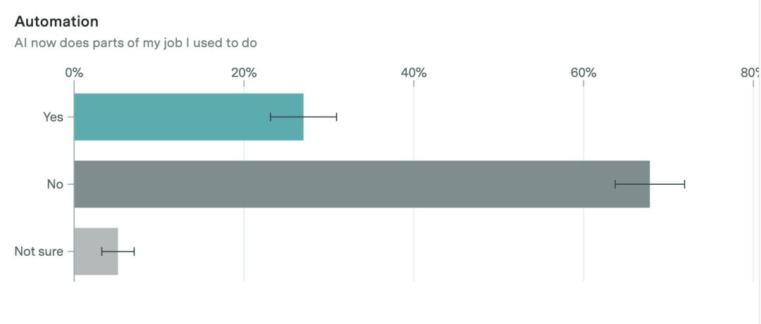27%的受访者表示,AI已替代部分原有任务,如总结文件、整理信息等工作现在由AI完成。