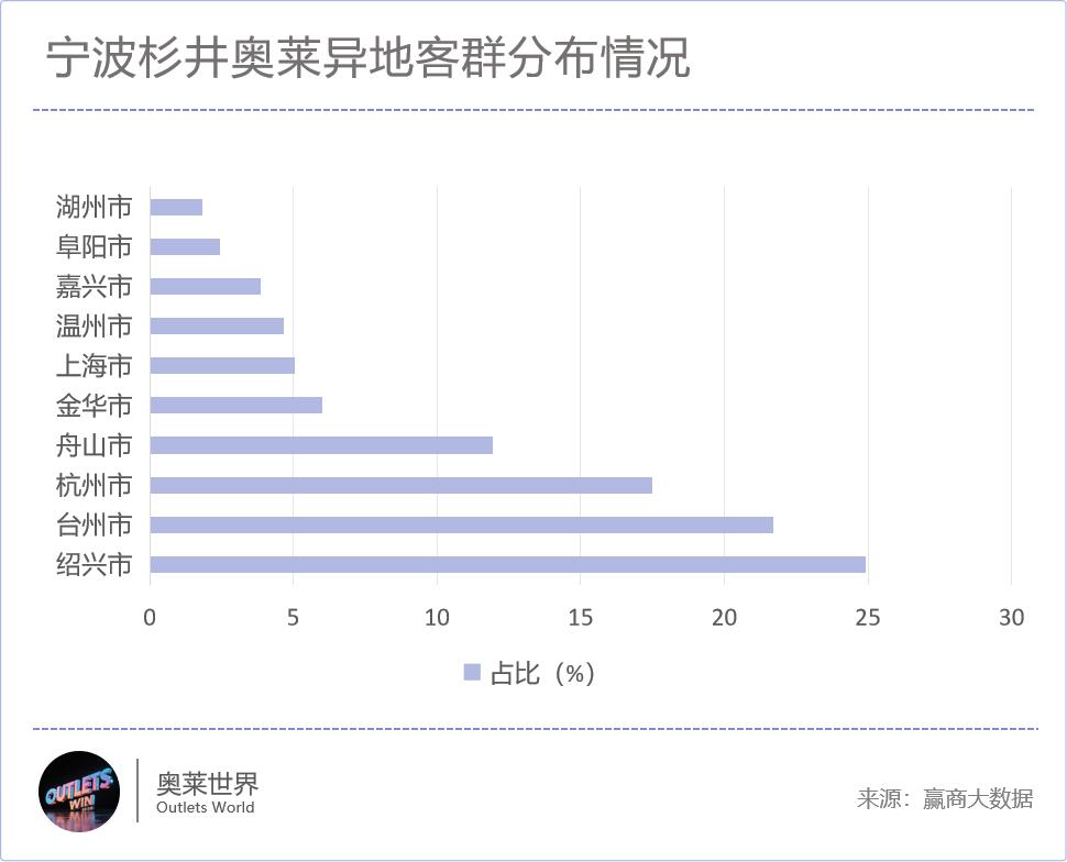 从客群结构来看,赢商大数据显示,宁波杉井奥莱本地客群占比高达82.1%,远超全国行业平均的60%~75%。