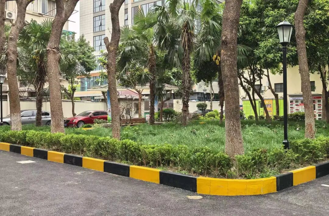 如今走进场中公寓,焕然一新的环境让人难以与过去联系。平整崭新的沥青路面延伸开来,窨井盖与路面严丝合缝、齐平规整。楼体立面雨水管、污水管分类布设,颜色统一、排布整齐。停车位重新规划划线,编号清晰、规范有序。中心花园修葺一新,凉亭粉刷洁白,新增座椅干净舒适,绿植修剪整齐,成了居民休闲聊天的“网红打卡点”。围墙洁白亮眼,每个单元门口加装不锈钢扶手,老人上下台阶安全省心,居住环境实现质的提升。