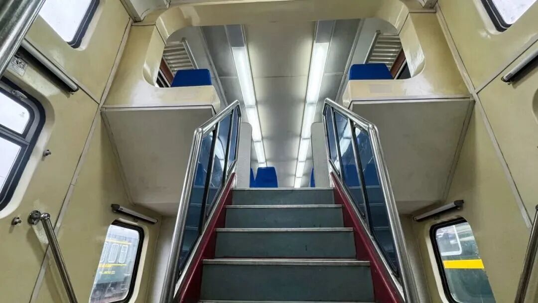 Y598次旅游列车编挂8节硬座车厢,全列定员1176人,运能比单层列车多出四分之一。和普通单层列车相比,双层列车空间更宽敞,旅客可通过车厢内的楼梯上下,尤其是上层车窗位置,视野格外开阔,沿途风光尽收眼底。