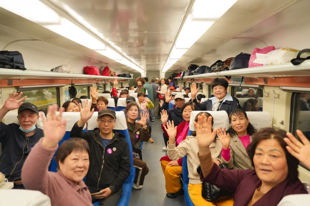 旅客张女士说:“今天和朋友们坐双层旅游列车出行,车厢舒适宽敞,铁路工作人员服务也特别热情。下车步行就能到药王山,太方便了!”