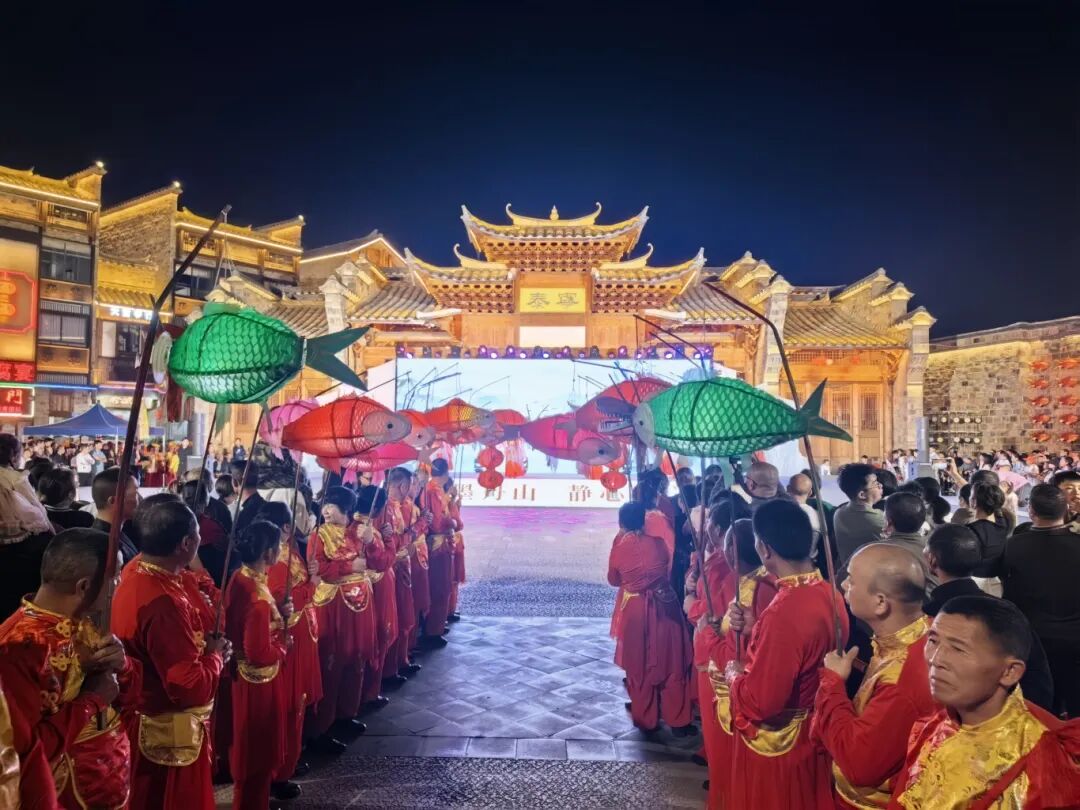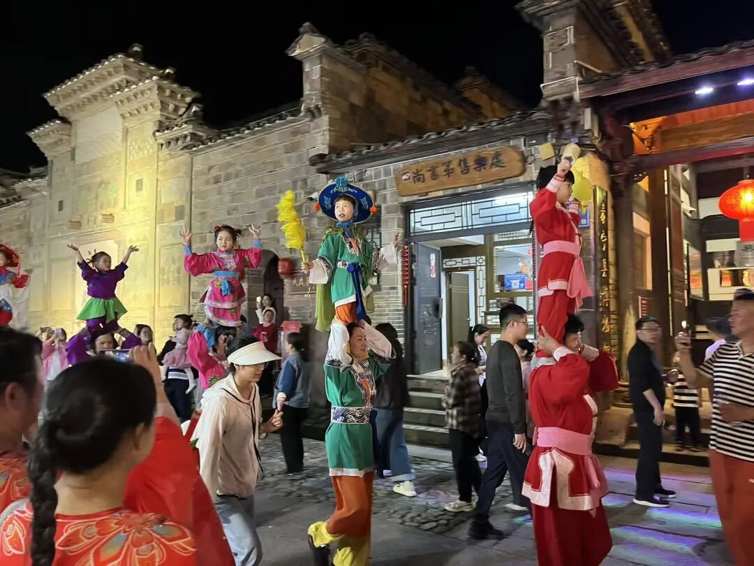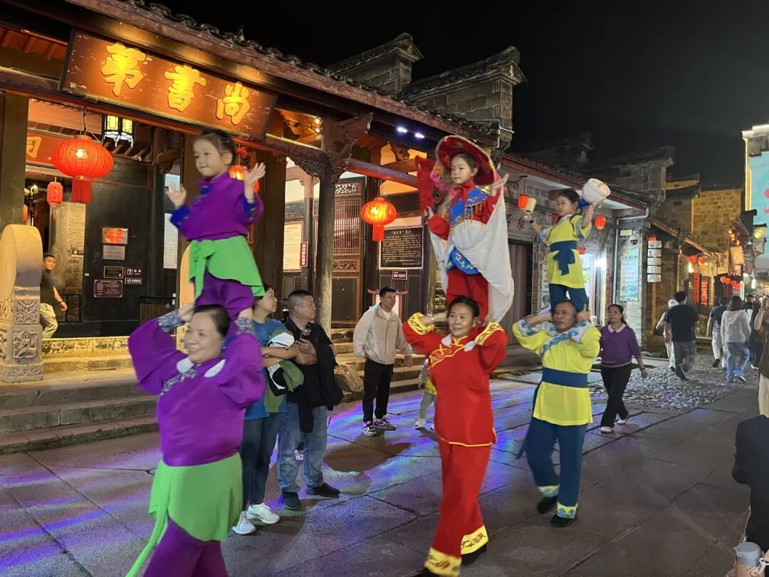 泰宁古城内,沙县肩头棚、泰宁鱼子灯、傩舞、豆腐挑担与打更等6组巡游队伍沿主街穿梭。流光溢彩的鱼子灯、古朴神秘的双傩舞、妙趣横生的肩头棚……巡游队伍与固定点位表演、非遗市集相互呼应,让游客在古街巷弄中随时与非遗“不期而遇”。