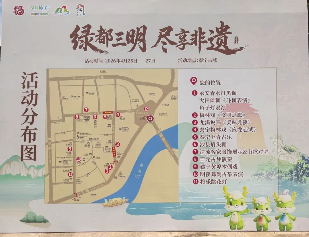 4月26日至27日,作为2026年三明市文旅经济发展工作推进会的重要环节,“绿都三明 尽享非遗”非遗展示展演活动在泰宁古城拉开帷幕。全市11个县(市、区)的优质非遗项目齐聚古城,通过集中展演、动态巡游、静态展示与互动体验相融合的形式,全方位呈现国家级客家文化(闽西)生态保护区的建设成果与优秀非遗项目,为市民和游客打造了一场可观赏、可品味、可参与的非遗盛宴。