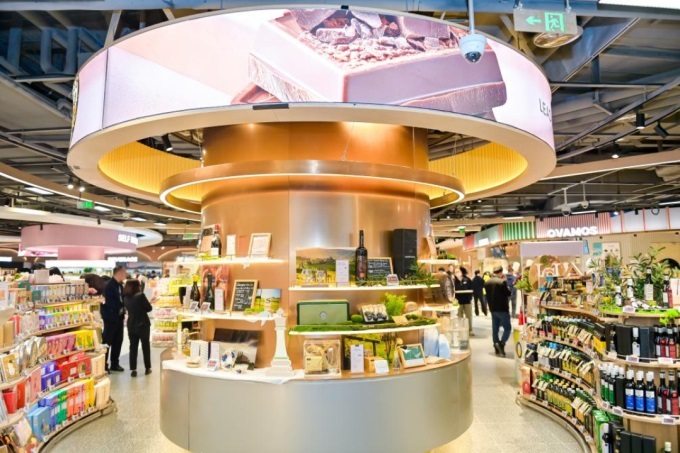 由餐桌风味延伸至家庭日常,家庭食材专区以进口乳品、进口调料与庄园级橄榄油等构筑健康餐桌体系。此外,休闲食品专区汇聚国际获奖巧克力的买手店、以“稀缺自然+健康生活”为定位打造“水源圣殿”的世界精品水墙,兼顾日常赏味与礼赠场景。最后,消费者可在悦己生活专区,体验国际顶奢沙龙线个护服务,同时获取适配银发人群、女性、儿童的多元营养解决方案。