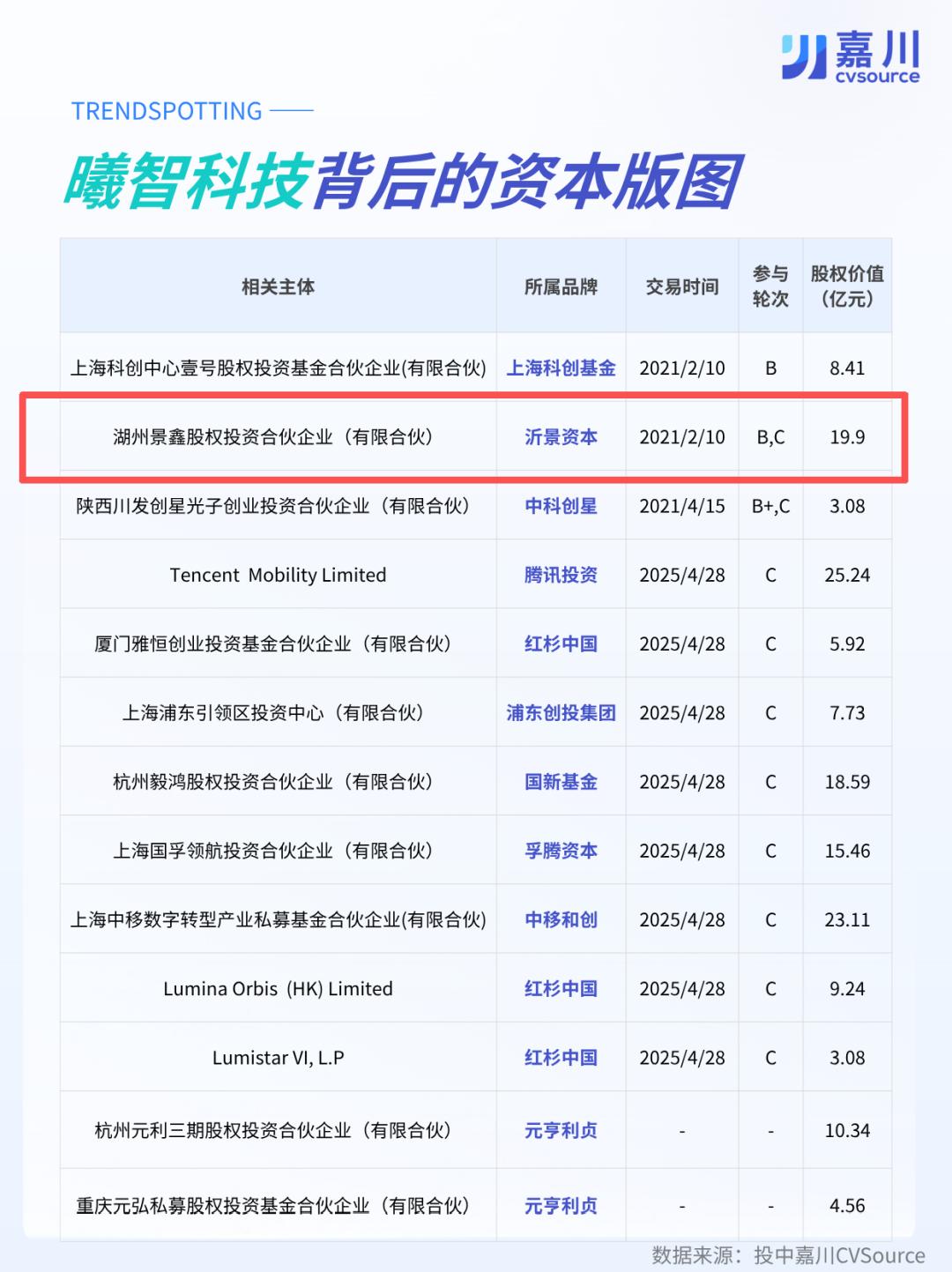2017年沈亦晨创办曦智科技,8年完成9轮融资,获真格、百度风投等顶级机构加持。沂景资本在B轮和C轮参投,截至上市持有257.9630万股,持股比例2.80%。按C轮投前估值44.58亿-75亿元、上市后700亿人民币估值计算,C轮投资翻10-15倍,两次投资持股市值达19.9亿元。