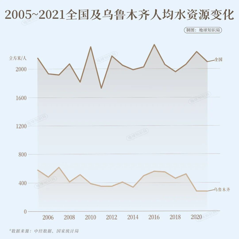 全国人均水资源量约2200立方米,而乌鲁木齐仅为281立方米,相当于全国人均的八分之一,还不到国际“极度缺水”红线(500立方米)的一半,早已被列入全国30座严重缺水城市名单。