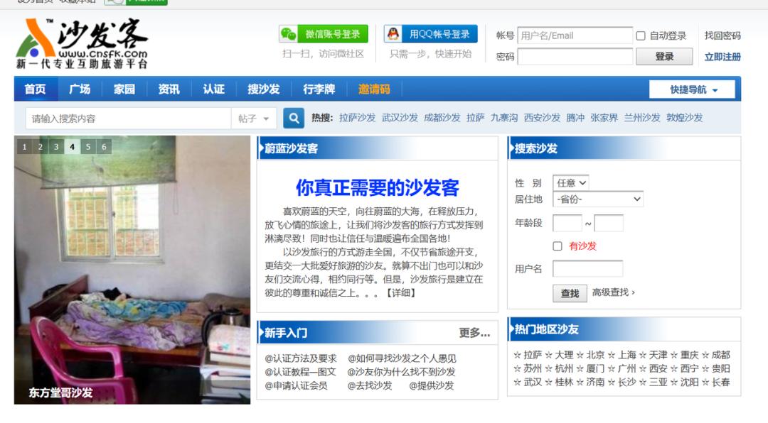 国内还有“沙发客”豆瓣小组,以及一些相关网站。